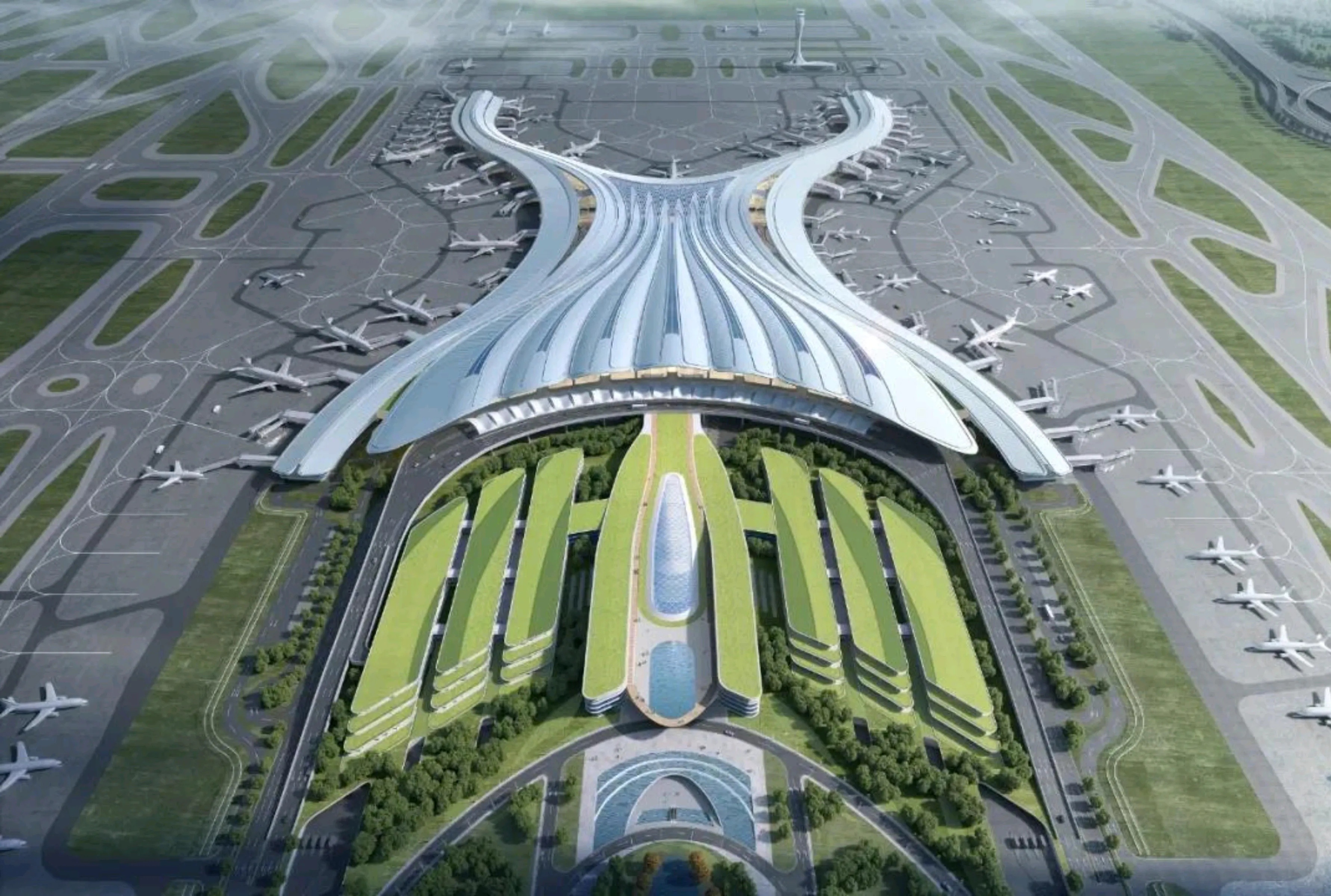 由中國一冶承建的廣西玉林福綿機場是全國首個采用EPC模式建設的民用機場,定位為國內民航運輸支線機場,按年旅客吞吐量150萬人次、貨郵吞吐量5000噸目標設計建設,飛行區等級指標4C。航站樓樓頂設計圓潤天窗,寓意美玉;兩根大型支柱象征雙木成林。該項目的建成投用對于完善廣西機場布局具有重大意義。