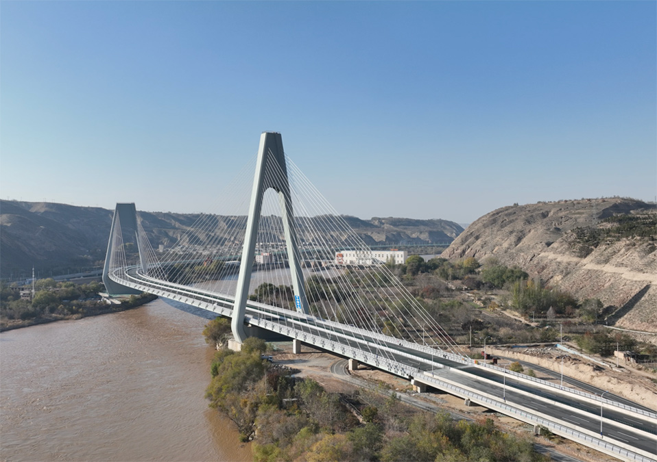 由中國二冶承建的蘭州柴家峽黃河大橋,是目前國內曲率半徑最小跨度最大的“S”型曲線雙塔跨黃河斜拉橋。該橋為“A”字型高低塔斜拉索鋼箱梁橋結構,橋長1250米,共設置56對平行鋼絲斜拉索。大橋構筑了蘭州東西向貫穿城市的核心綠脈,對帶動城區經濟和城市向外拓展具有十分重要的使命,同時也為“絲綢之路”經濟帶建設提供重要支點。